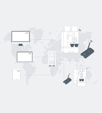 For each Professional coffee machine you simply define when the data is read out and to which target address it is sent. Then you can access all the information on the connected coffee machines from one central website. After the initial installation, you can conveniently manage, group and monitor all the Data Communicators in use online. You can also create different user profiles and authorisation levels for quick and easy coordination. The additional option of sending data automatically to e-mail or server addresses makes handling even easier.